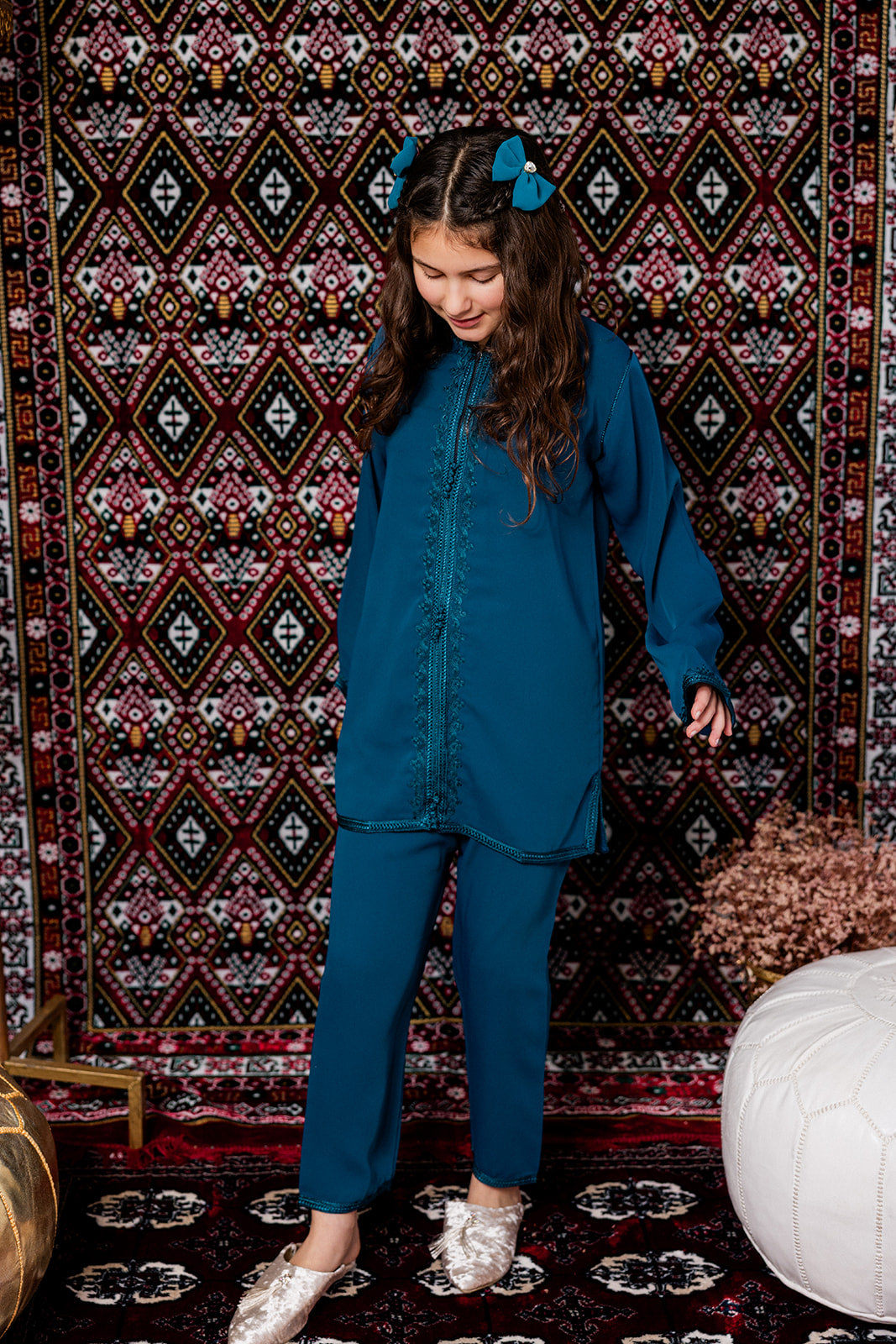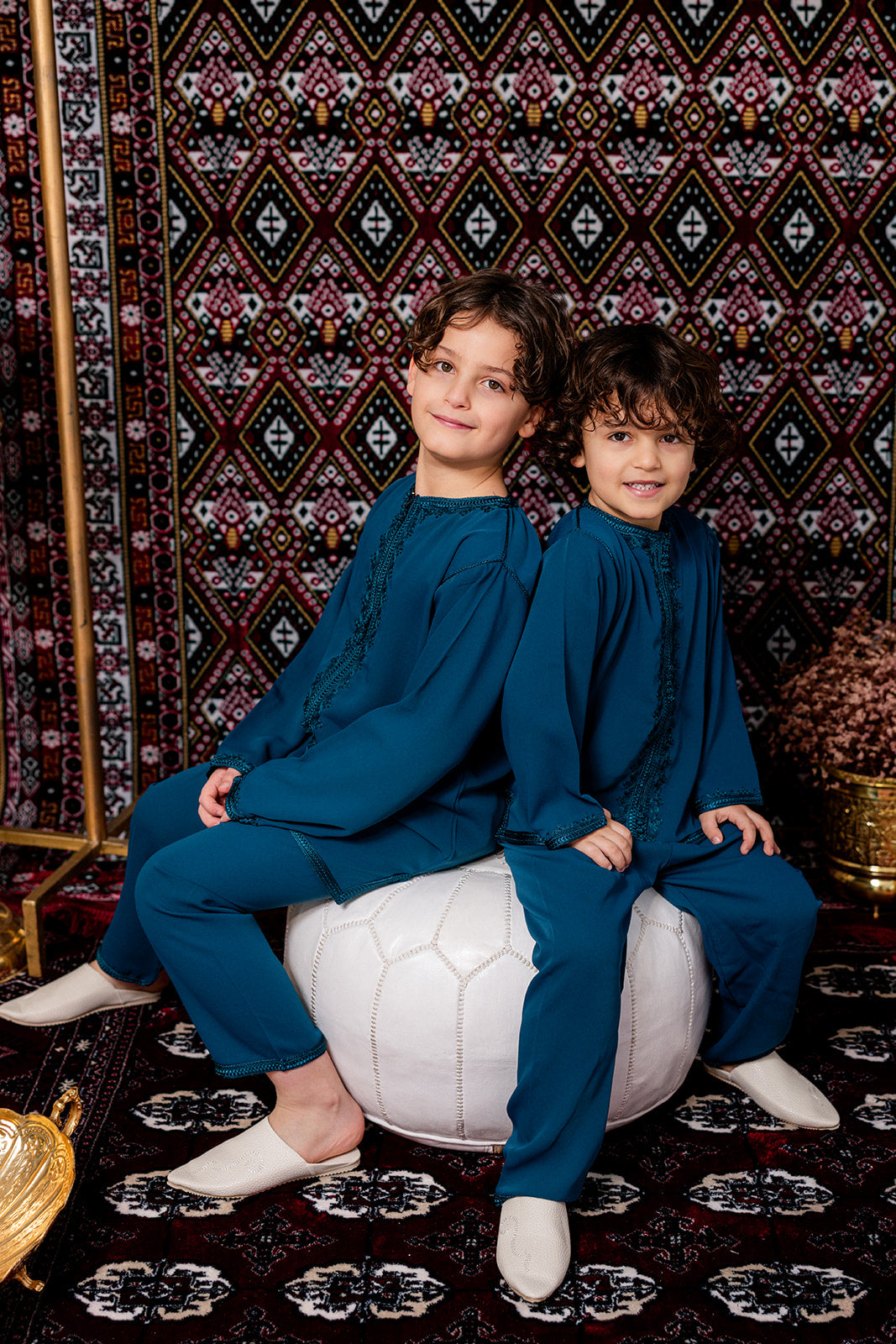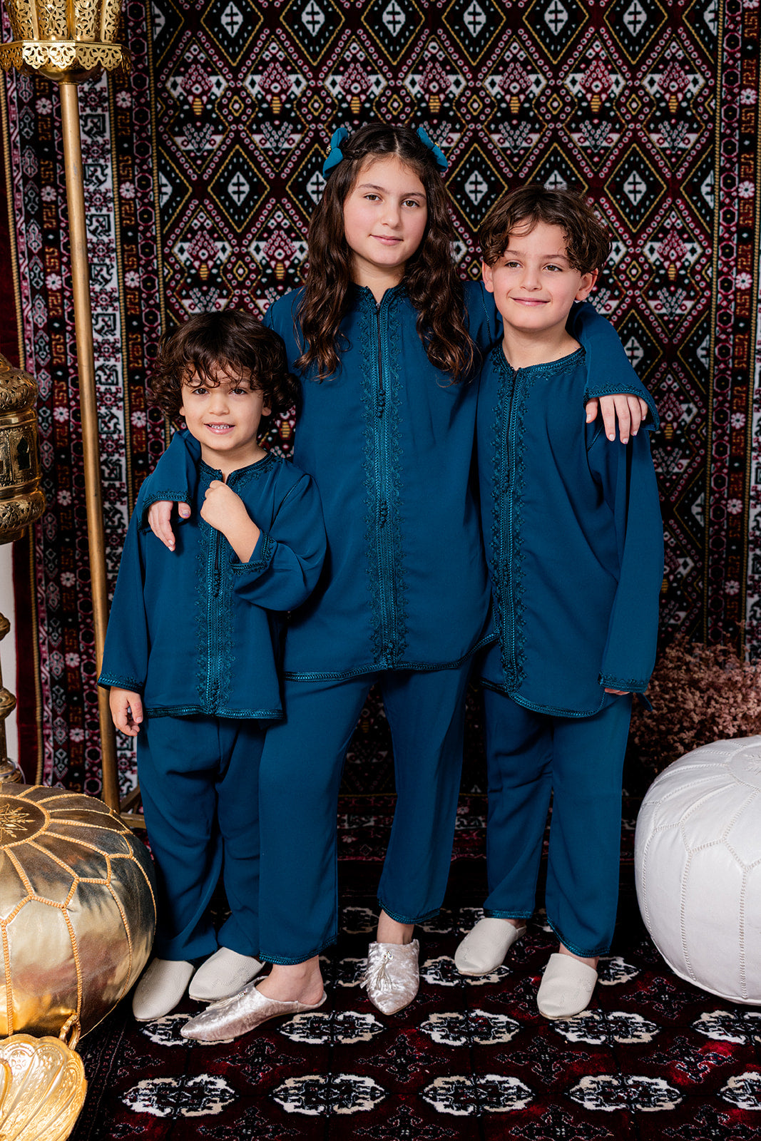 Deze stijlvolle jabador voor kinderen is een tijdloos en elegant tweedelig setje, geschikt voor zowel jongens als meisjes. De jabador bestaat uit een comfortabele broek en een tuniek met verfijnde afwerking, geïnspireerd op traditionele Marokkaanse kleding.